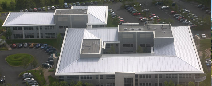 4,000m2 Composite low pitch roof panel. 800lm Aluminium Bullnose fascia & soffit